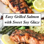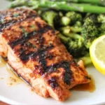 Juicy grilled salmon marinated in a sweet and savory blend of brown sugar, soy sauce, lemon juice, olive oil, and garlic. The marinade caramelizes beautifully on the grill, creating a glossy glaze while keeping the salmon tender and flavorful.