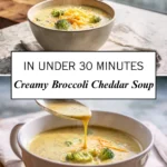 A rich, creamy broccoli cheddar soup made with tender broccoli, freshly grated cheddar, aromatics, and a velvety broth for a cozy, comforting meal.