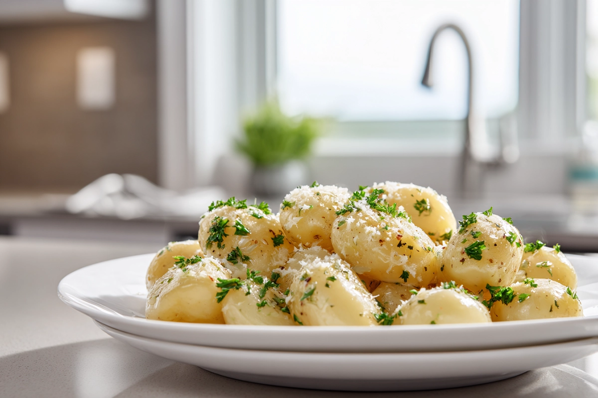 Tender Yukon Gold or baby red potatoes coated in a rich, garlicky cream sauce with Parmesan and fresh parsley. A comforting, versatile side dish perfect for pairing with meats or vegetables.
