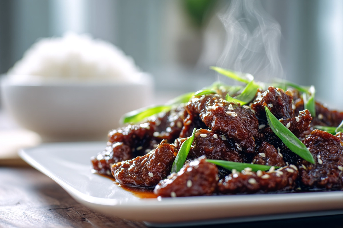 At its core, the dish is all about balance. Thin strips of beef are quickly seared until caramelized, then tossed with a sauce made of soy, brown sugar, ginger, and garlic. It’s not overly spicy, though you can add chilies if you like some heat. The glossy finish comes from cornstarch, which thickens the sauce and helps it cling to every piece of meat.