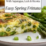 A comforting spring frittata made with tender asparagus, sweet leeks, and creamy ricotta. This one-skillet recipe is easy to prepare and works beautifully for brunch, lunch, or a light dinner.