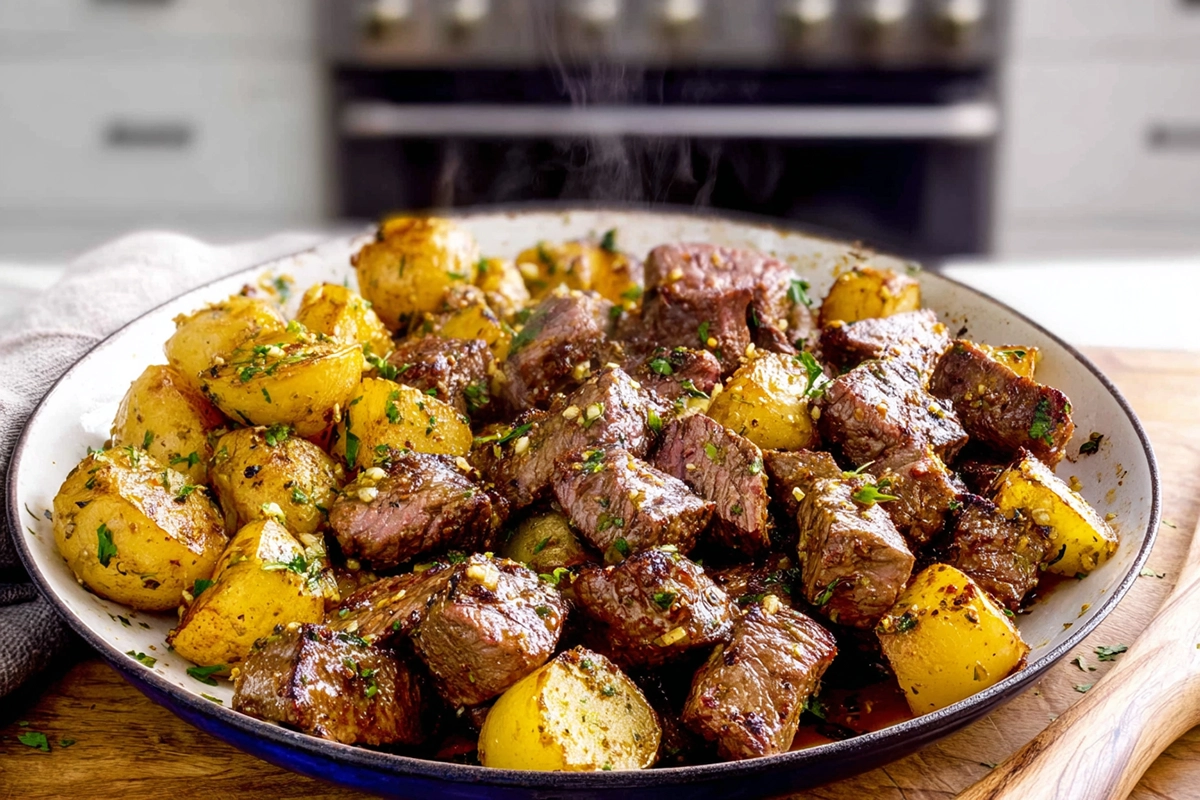 A rich, flavorful one-pan meal where tender steak bites meet crispy golden potatoes in a garlic butter sauce. Comforting, quick, and perfect for weeknights.
