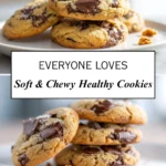 Soft, chewy healthy chocolate chip cookies made with oat or whole-grain flour, natural sweeteners, and dark chocolate for a lighter treat that still tastes rich and satisfying.
