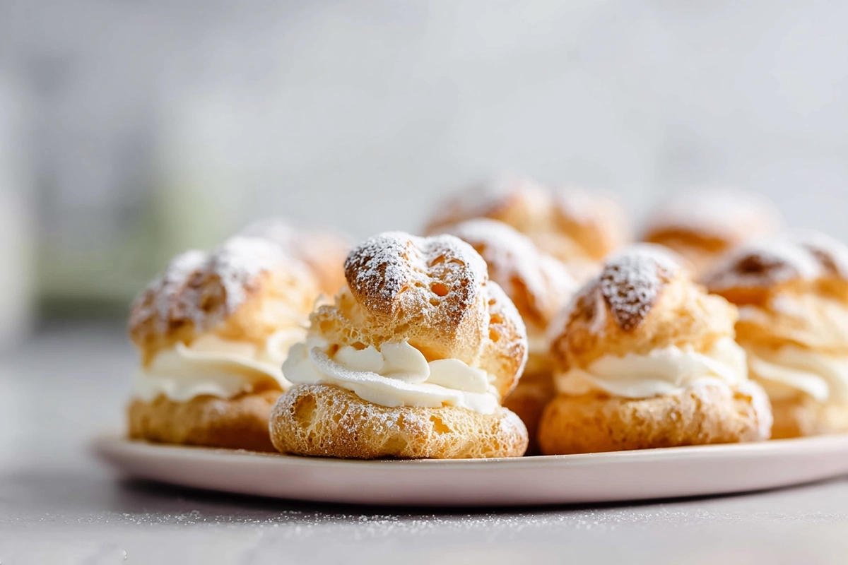 Light fillings such as whipped cream, yogurt cream, or fruit mousse help the pastries stay airy. These pair perfectly with the crisp shell without overpowering the delicate texture.