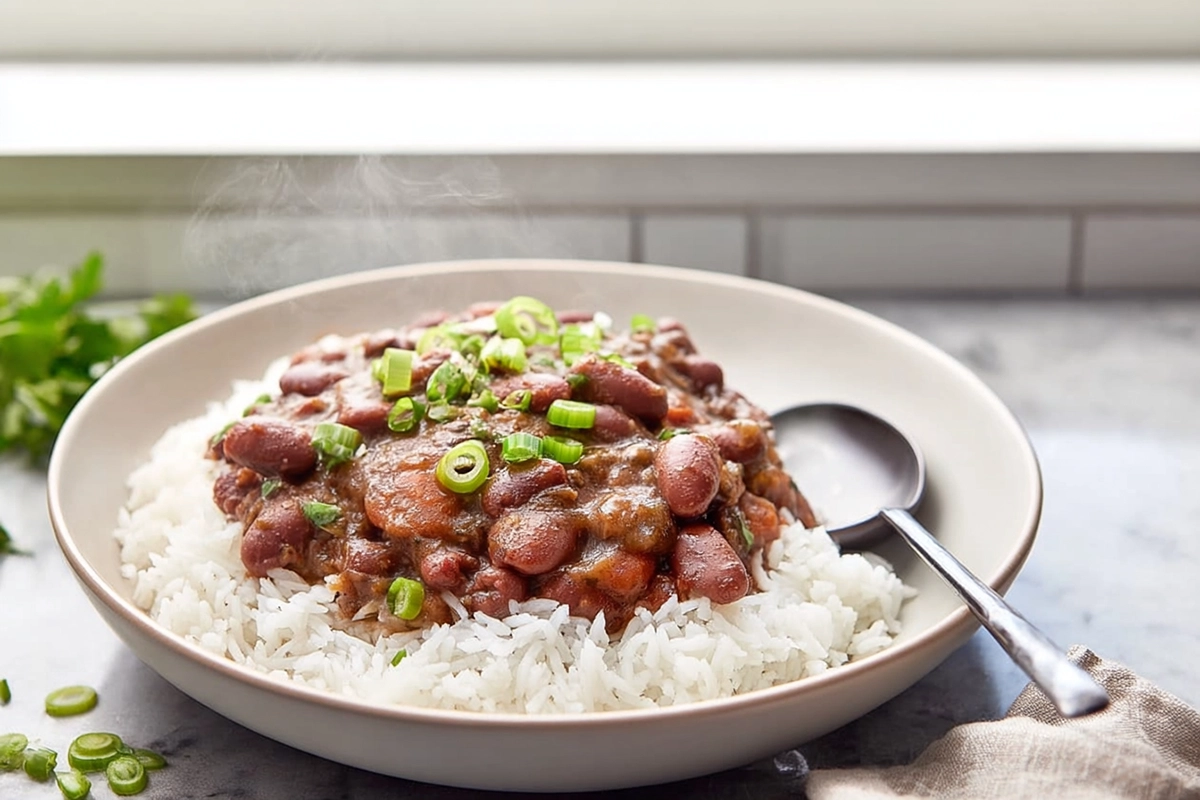 Spoon the beans over a warm bed of rice, then add a sprinkle of green onions or a dash of hot sauce. Every spoonful carries a bit of heat, a touch of smoke, and a deeply satisfying richness.