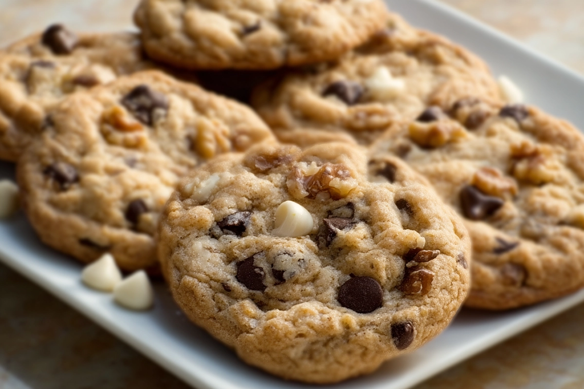 Most chocolate chip cookies rely on creamed butter for lift. These rely on melted or browned butter for richness. That alone changes everything. The oats provide a bit of structure that helps the cookie stay thick while still soft in the center. When you combine that with semisweet and white chocolate chips, you get layers of flavor that balance sweetness with depth. It’s the kind of cookie you bring to a gathering and watch disappear faster than you can set them down.