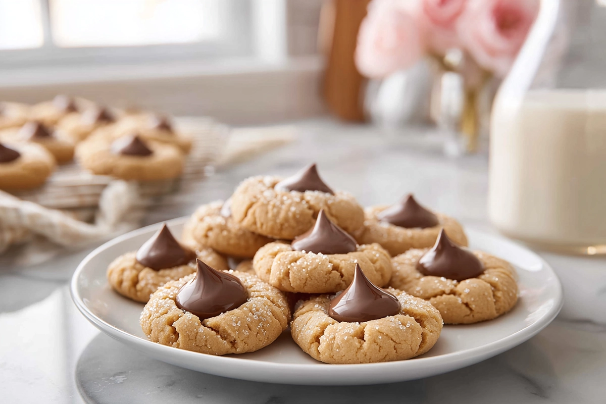Soft, chewy peanut butter cookies topped with melty chocolate kisses — a nostalgic American classic that’s easy to make and loved by everyone. Perfect for holidays, bake sales, or an afternoon treat with a glass of milk.
