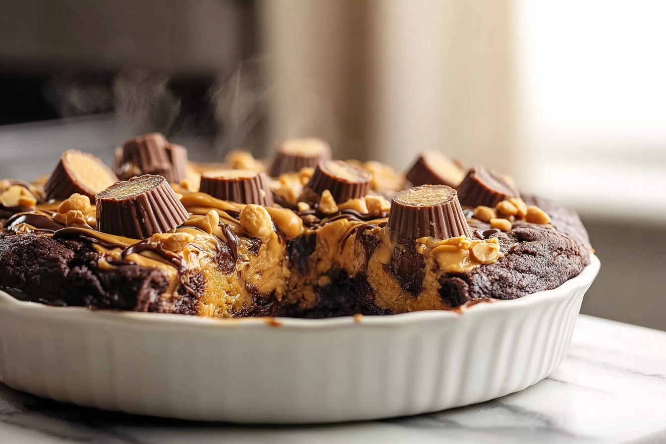 A warm, gooey dessert made with chocolate cake mix, creamy peanut butter, and mini peanut butter cups — a comforting, crowd-pleasing treat that’s simple to make and irresistibly rich.