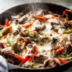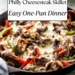 This Philly Cheesesteak Skillet delivers everything you love about a classic cheesesteak—tender seared steak, sweet peppers and onions, and melty cheese—without the sandwich juggling. Cooked in one pan with smart timing, it’s a rich, comforting dinner ready in about 30 minutes.