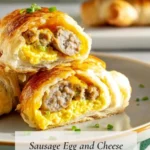 Warm, flaky sausage egg and cheese breakfast roll ups made with crescent dough, soft scrambled eggs, and melted cheddar. A simple, comforting breakfast that works for busy mornings or relaxed weekends.