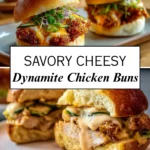 Crispy, spicy, and comforting, these Savory Cheesy Dynamite Chicken Buns feature golden fried chicken tucked into soft buns with a creamy, sweet-heat dynamite sauce and fresh crunchy toppings. It’s a reliable, homestyle slider recipe that works just as well for family dinners as it does for casual gatherings.