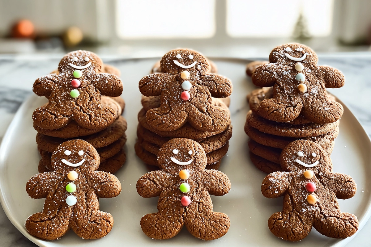 Soft, tender gingerbread cookies with a chewy center and warm spice flavor, made with molasses, brown sugar, and classic holiday spices for the perfect seasonal treat.