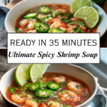 A flavorful Spicy Shrimp Soup featuring tender shrimp, fresh herbs, jalapeños, and a bright lime broth for a comforting and bold meal.