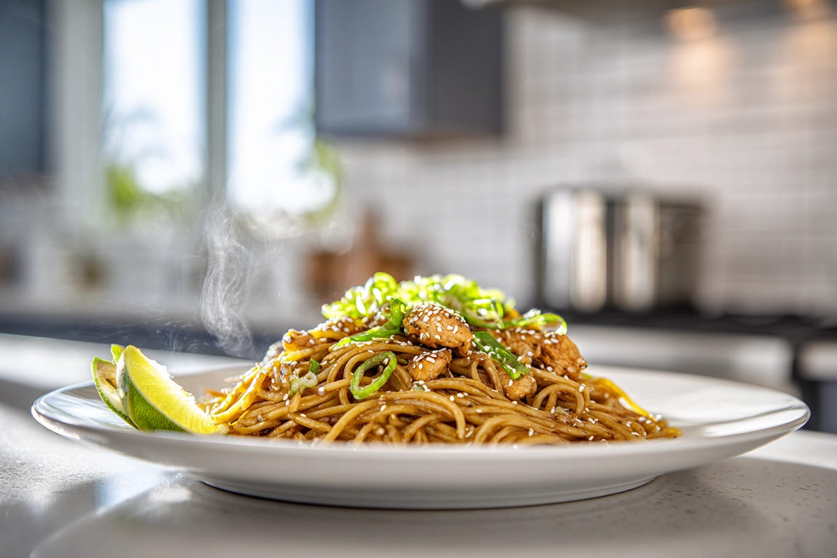 Many versions combine East-Asian influences: soy sauce (or tamari), ginger, maybe rice vinegar or dark soy, sometimes honey or brown sugar. Noodles vary—egg, rice, lo mein, or even spaghetti in a pinch. What matters most is the sauce texture and making sure your chicken is flavorful and your noodles coated well.