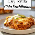These tortilla chip enchiladas are a cozy, no-roll casserole made with layered tortilla chips, enchilada sauce, melted cheese, and a simple savory filling. It’s an easy, comforting dinner that uses pantry staples and comes together quickly for busy weeknights or relaxed family meals.